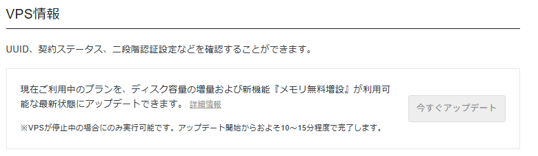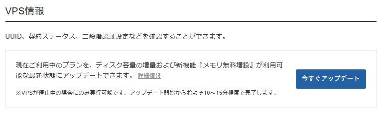 xserver vpsこれ押したはいいけどこの次のウィザードの「アップデートする」ボタンクリックした後のUI的なフィードバックが何もないまま管理画面に戻されてステータスも何も変わらないから本当に何となっている