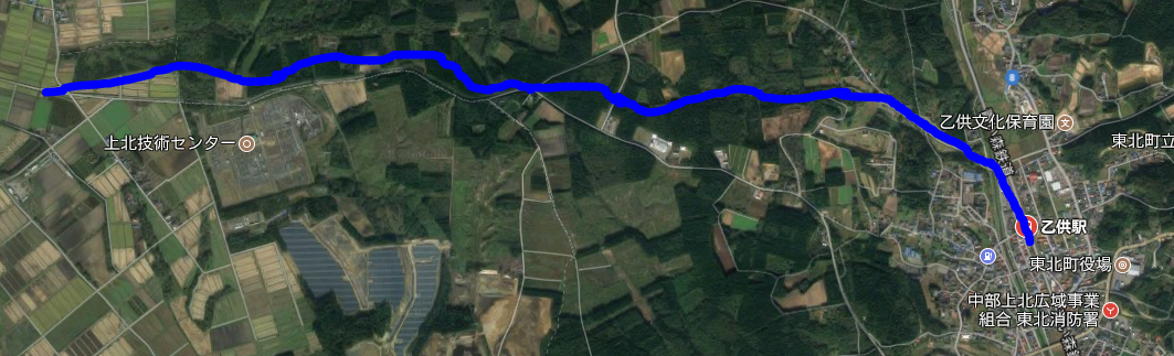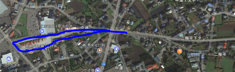 赤が現在の東北本線(現・青い森鉄道線)で分岐した黄緑が旧線の東北本線で、白丸が東北本線時代の千曳駅。水色が南部縦貫鉄道で、元々千曳駅まで伸びていた。しかし、新線建設が決まって東北本線の新線切り替えと共に千曳駅は現在の千曳駅へ移動し、もともと使われていた千曳駅は西千曳駅となり、旧線はそのまま南部縦貫鉄道に譲渡(売却?)され、南部縦貫鉄道はそのルート(ここでいう紺色)で野辺地まで乗り入れるようになった、と