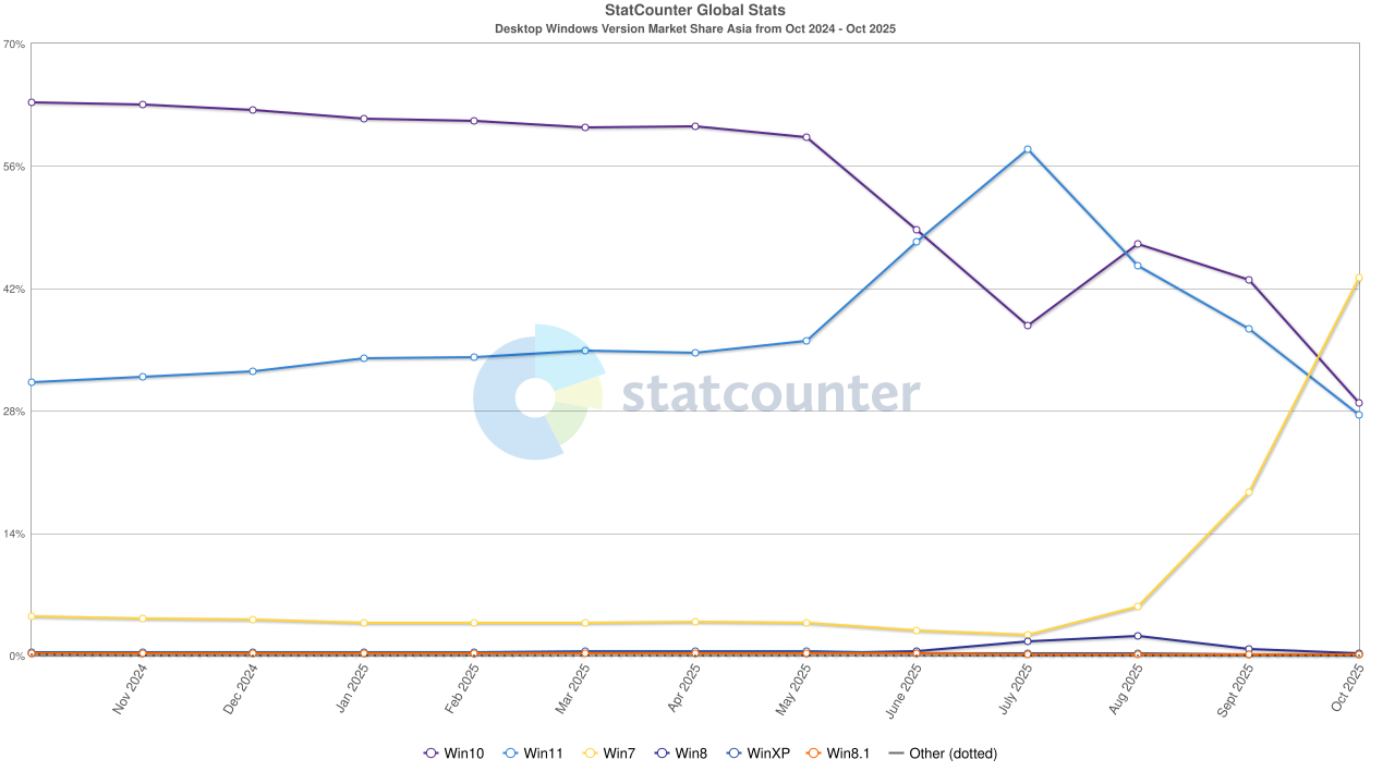 Desktop Windows Version Market Share Asia | Statcounter Global Stats https://gs.statcounter.com/windows-version-market-share/desktop/asia#monthly-202410-202510
