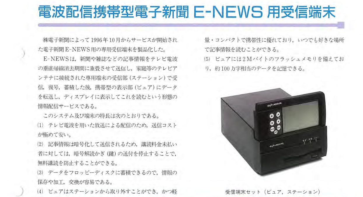 電波配信携帯型電子新聞 E-NEWS用受信端末が #フロッピーディスク に対応していて "情報の保存や加工, 交換が容易" などと言っているけど、提供側はどう考えてもそれを嫌がるでしょう?というところがある #三菱電機