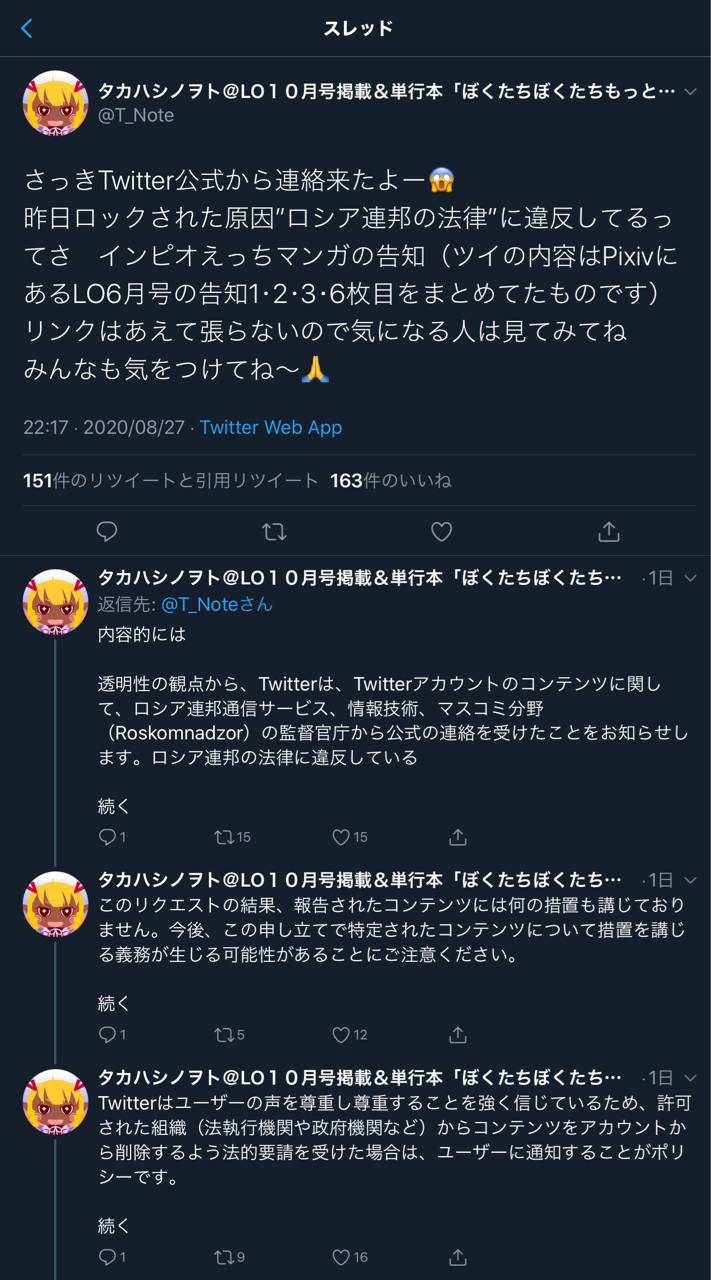 鳥、ロシアの政府からTwitterに通報、ロックされる事例があるようだ。