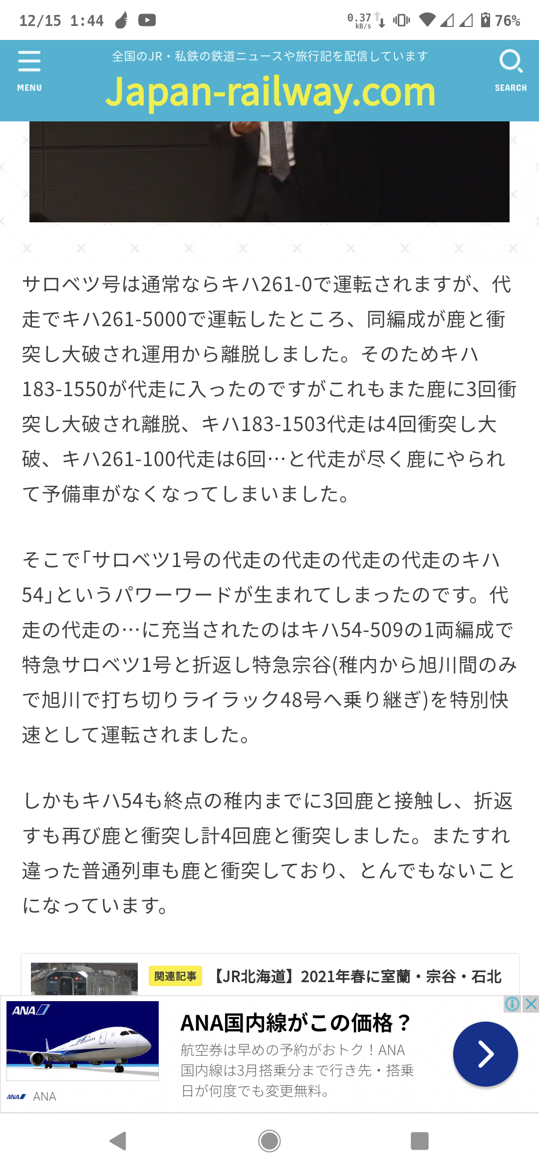 【予備車がない】特急サロベツの代走の代走の…に普通列車キハ54形1両が充当 途中鹿と4回衝突 | Japan-railway.com japan-railway.com/sarobetsu-da