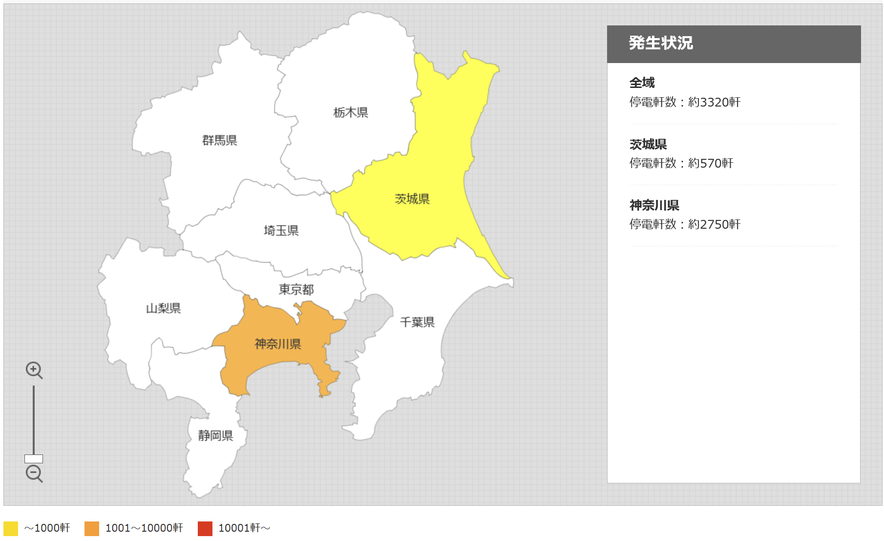 さっき見たときよりはちょっと減ってるけど停電出てはいる