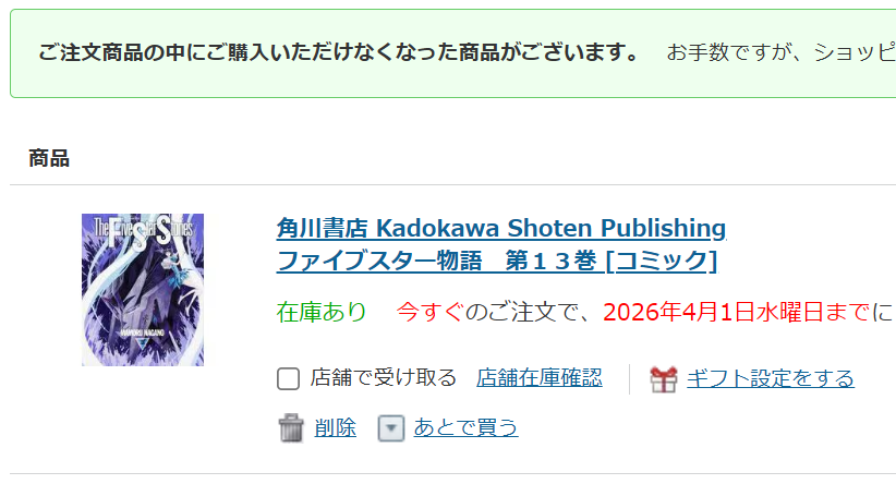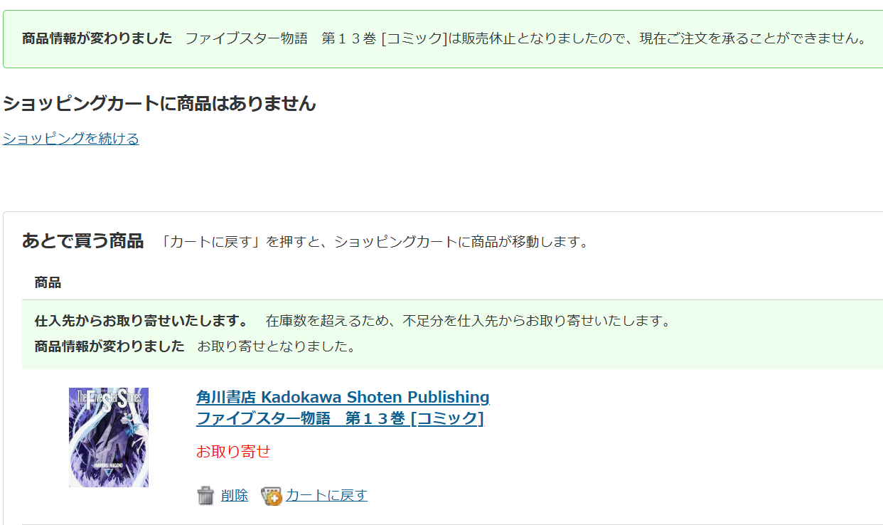 キレそ~…(多分カートに入れて注文すると在庫なしになるやつ