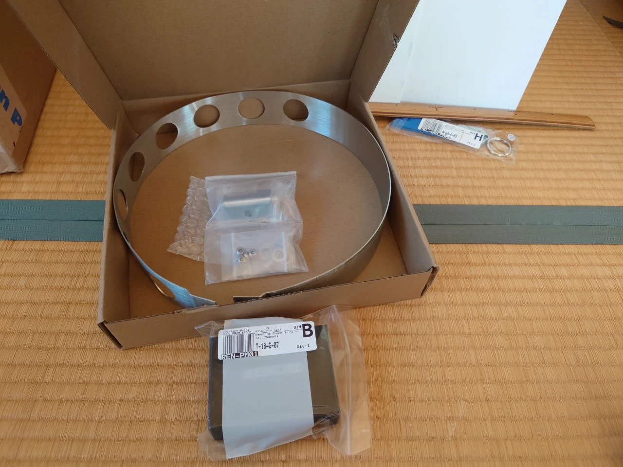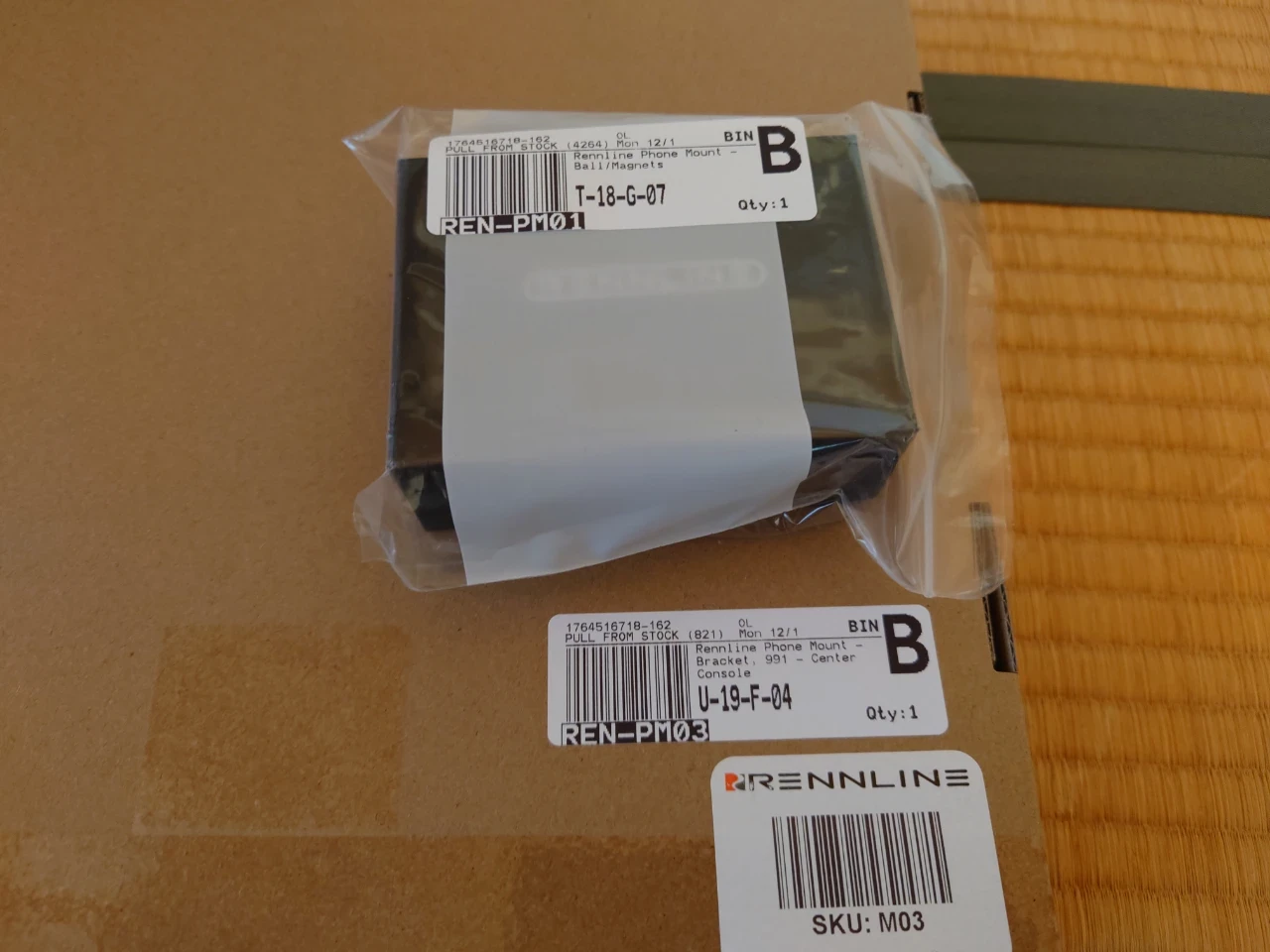 Pelican Parts で買ったセンターコンソール用のスマートフォンマウント、付いてるラベルは正しそうだけど、中身違う気がするな。