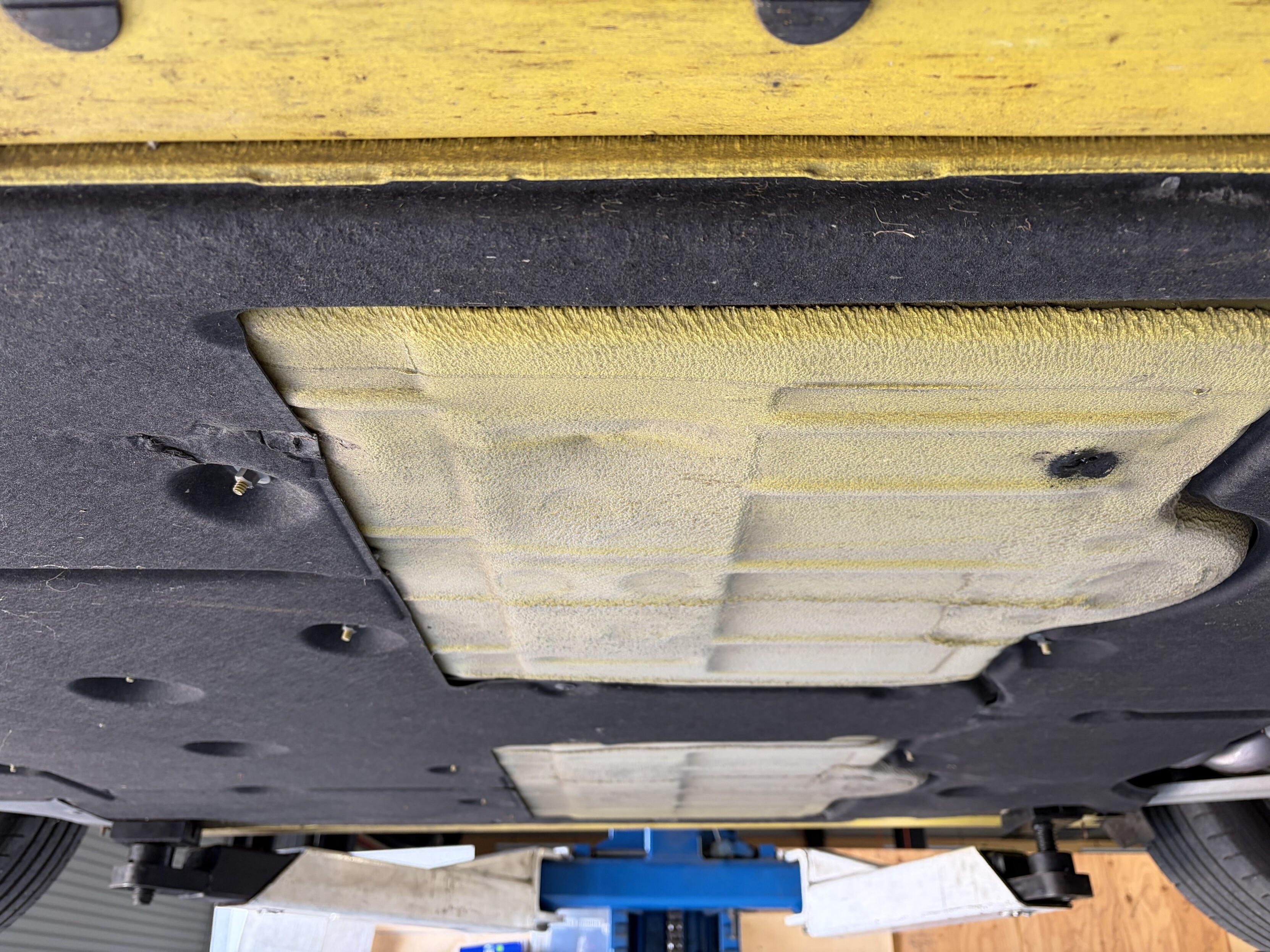 オイル交換なう。ボクスターのフロアに若干の凹みを見つけて、気持ちも若干凹みました。ハゲてた箇所だけ塗っておきました。何をぶつけたんだか記憶に無いが…