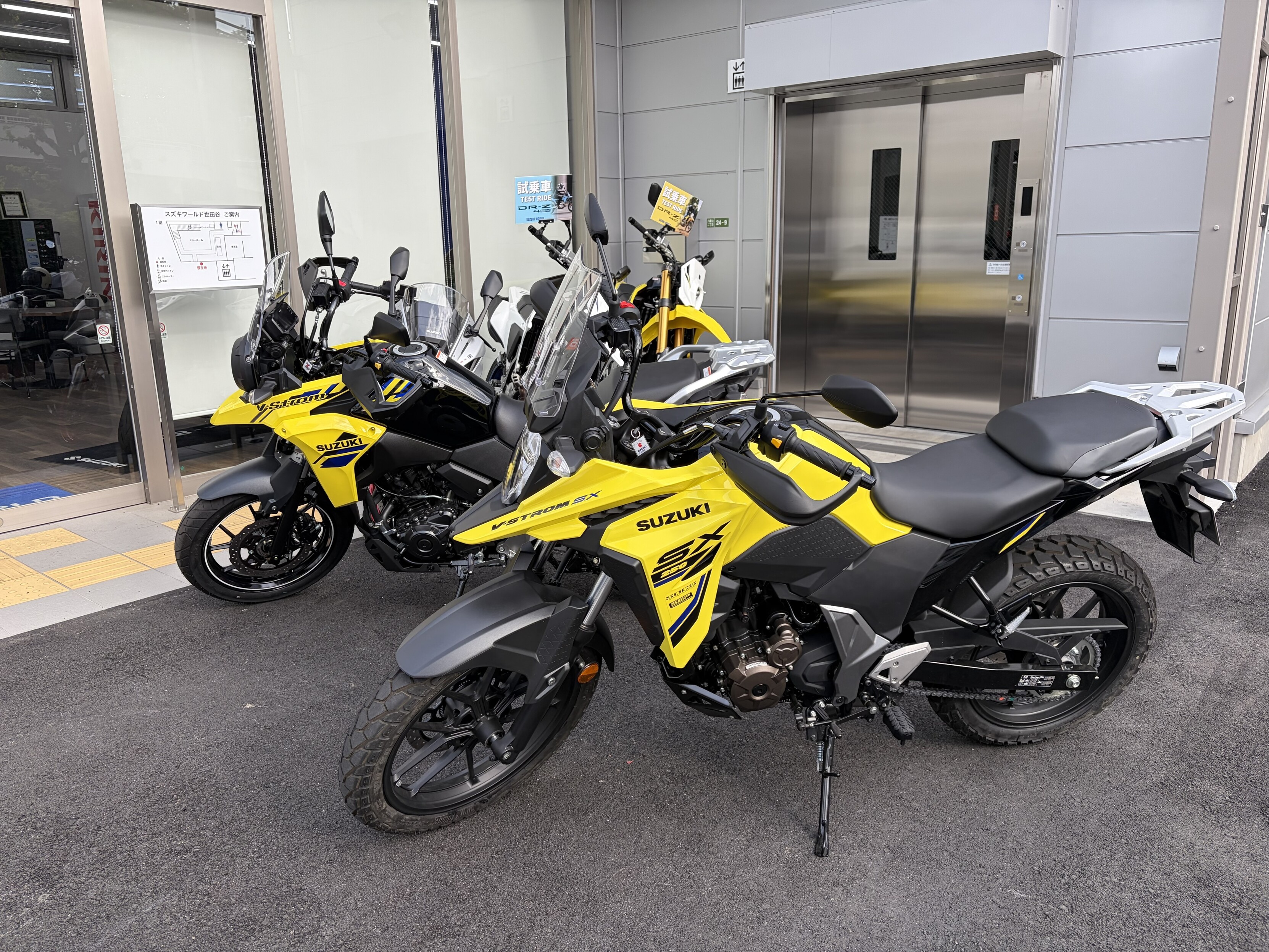 眺めて跨いできた。青もいいし黄色もいい。足付きは結構違う。(身長168 cm)