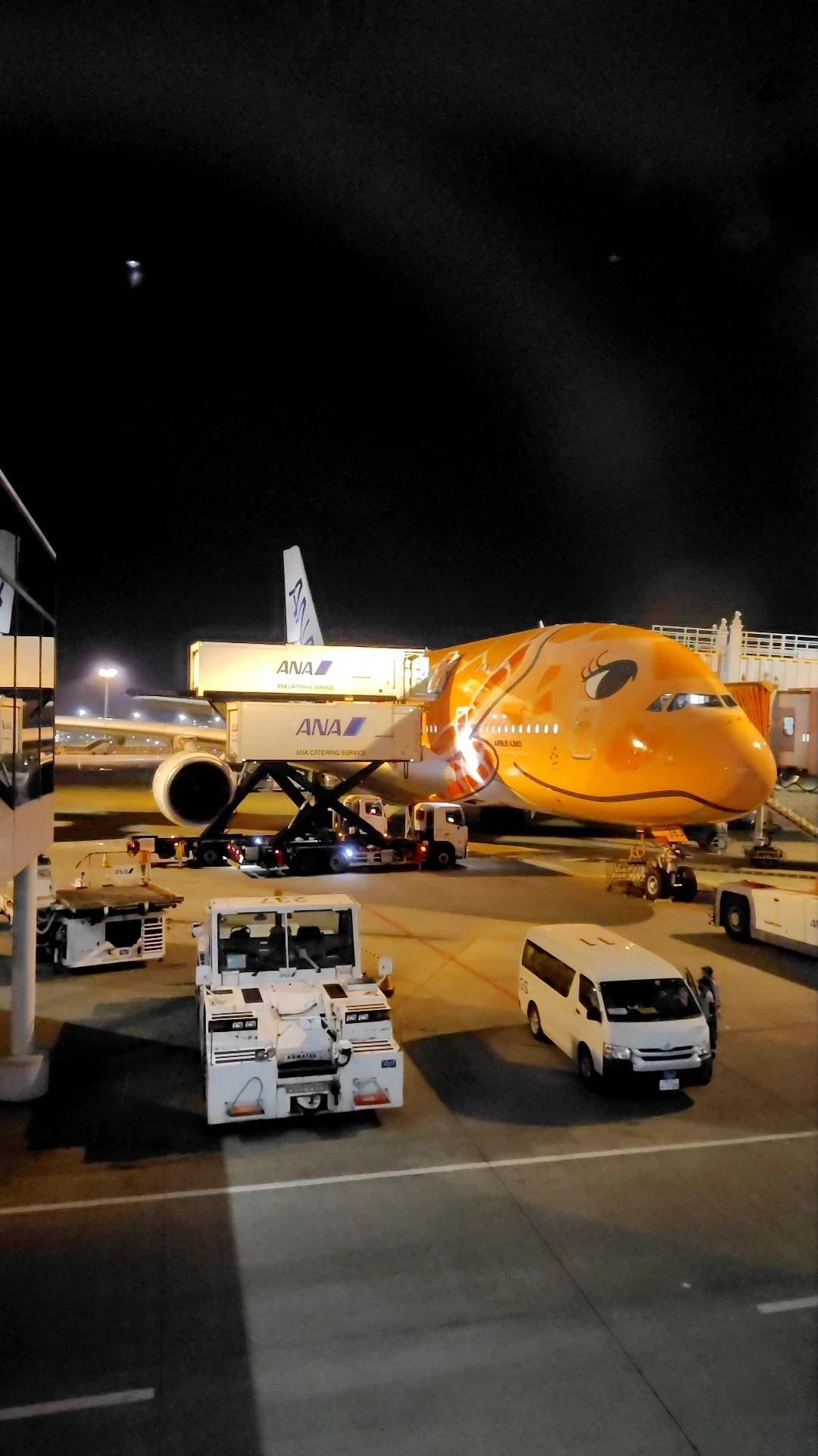 あれがフライングホヌのA380-8003号機(JA383A)だよ。オレンジ色なんだよ🐢