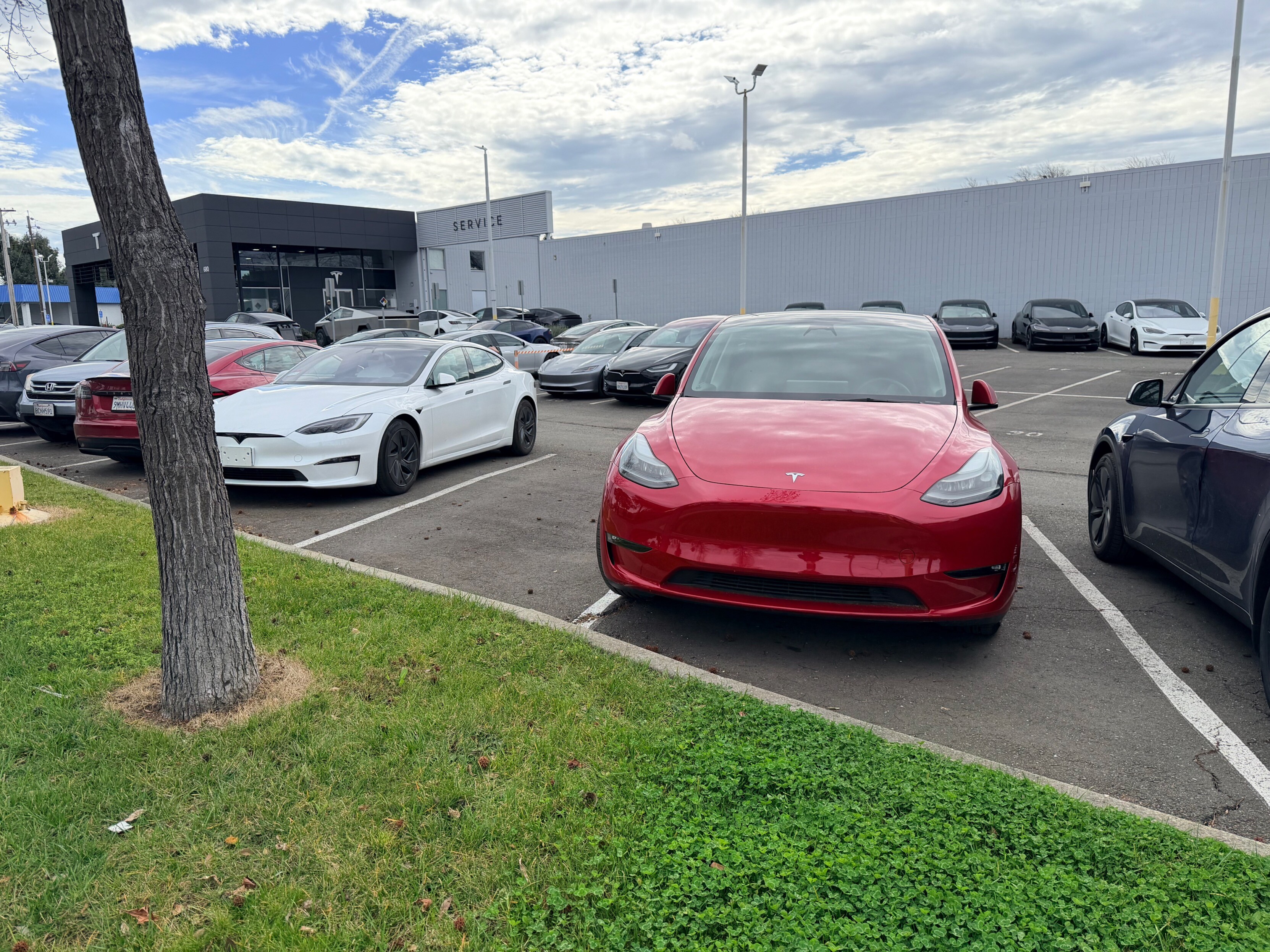 Tesla修理センターの駐車場、ナンバープレートのないやつがばしばし止まっててウケた。なんか高級車ほどつけない傾向があるらしいよ