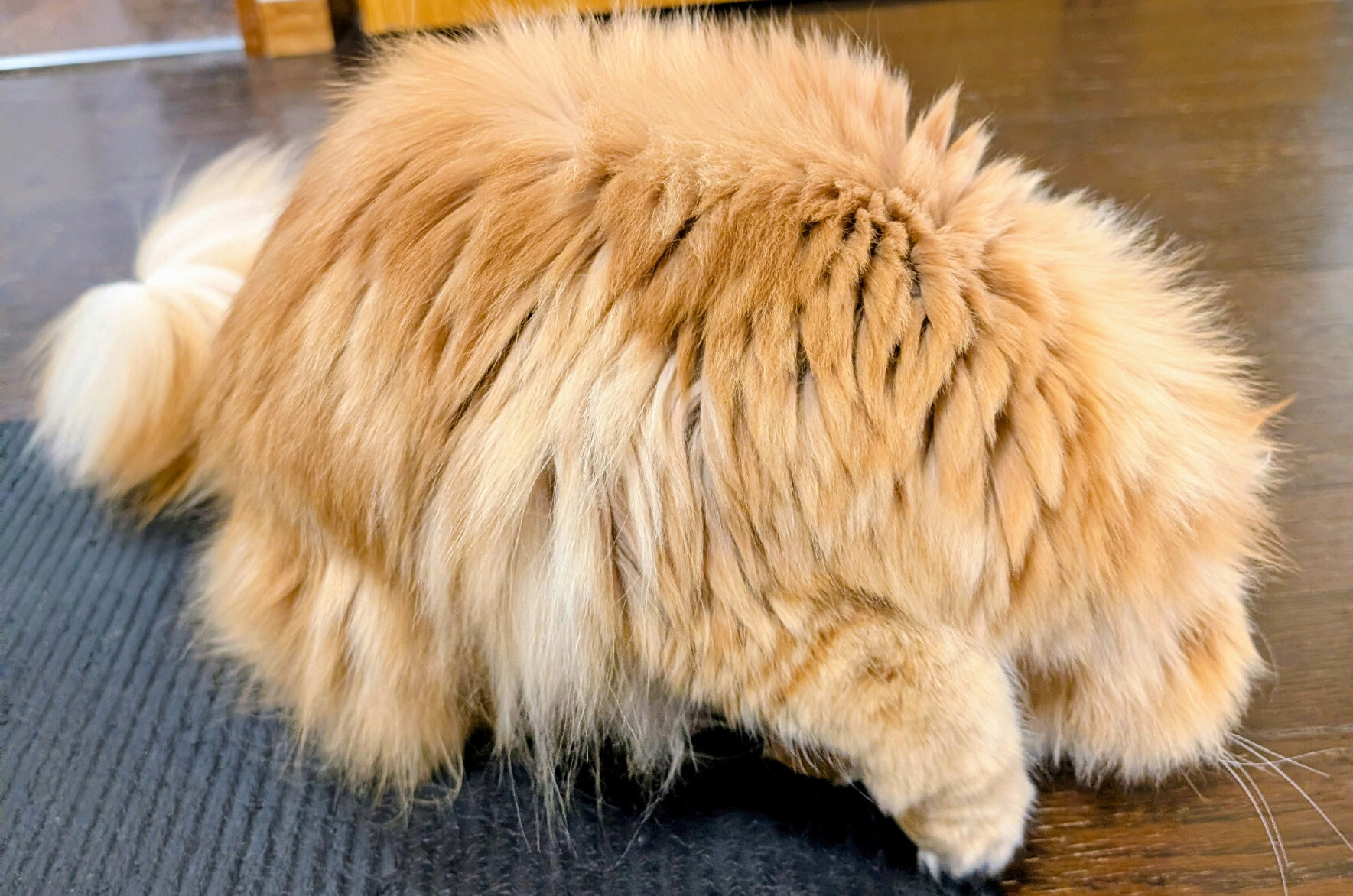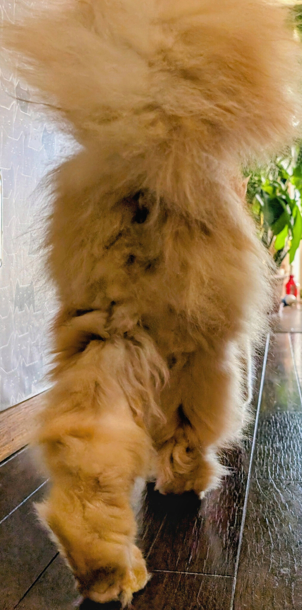 お顔ふきふきしておとこまえになったとこ撮りたかったんだけど、ふきふき後に貰うおやつのかけら探してて UMA ばっか撮れる。