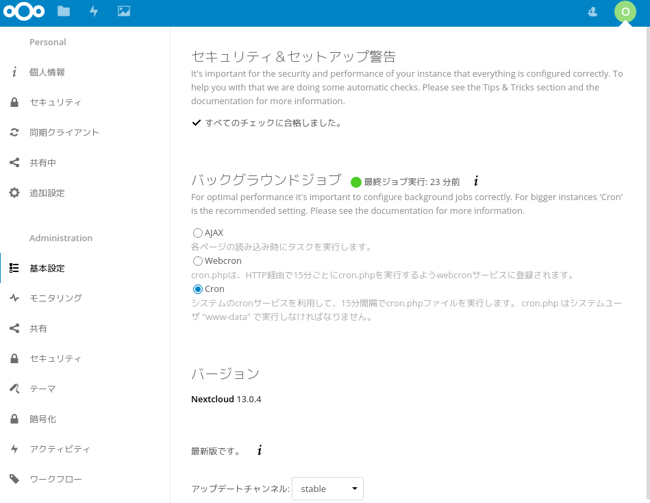 雑にnextcloud立ち上げたので設定詰めていく