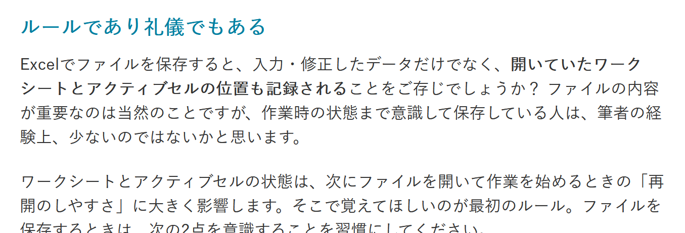 エクセルの保存時にアクティブセルを意識してる? A1に戻すのは「絶対」【Excel講師の仕事術】