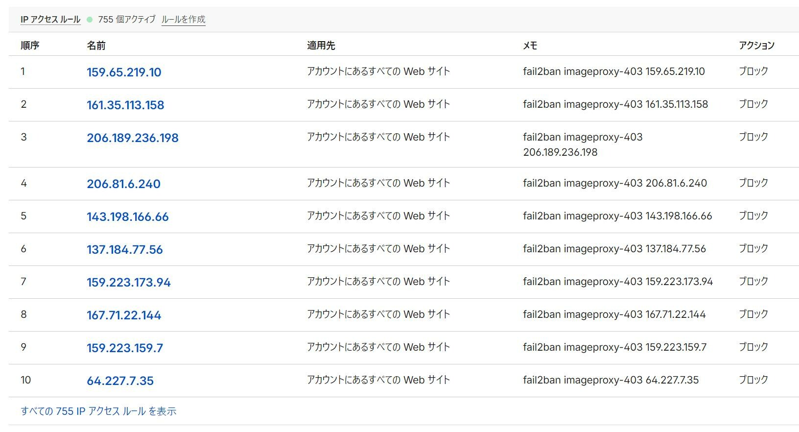 画像プロキシの署名クリアしなかったやつをfail2banと組み合わせてCloudfalreでbanするようにした。これでも、まだ4時間分ぐらいのログからなんだよな。IP単位だと指定数足りなくなりそう。かといってブロックで指定すると巻き添え出るし・・・。