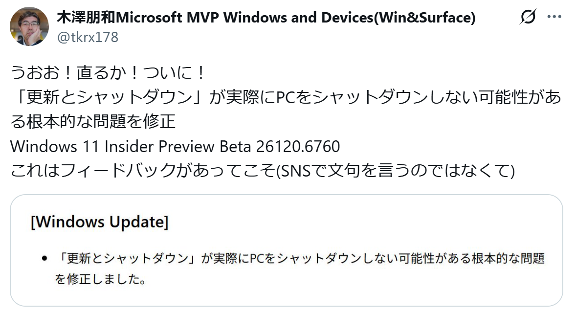 https://x.com/tkrx178/status/1975198042220597750ほんまになおるんか??っていうか、これちゃんと不具合として認識されてたんだな・・・