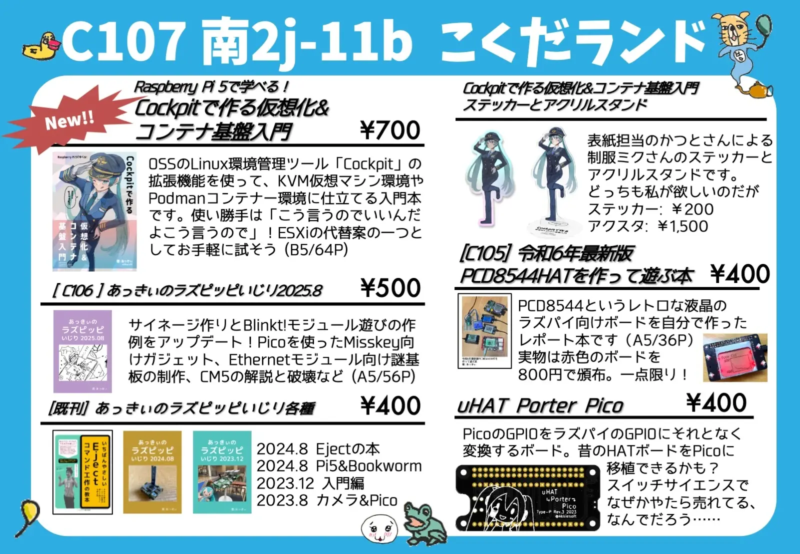 新刊は「Raspberry Pi 5で学べる!Cockpitで作る仮想化&コンテナ基盤入門」(現地頒布価格700円)!
