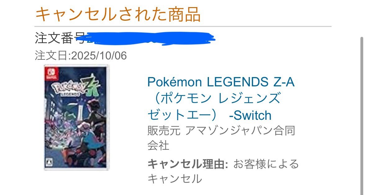 ノリで予約したけどデジモン買っちゃったからキャンセルした。デジモンクリアしてその時もまだポケモンやりたい気持ちあったらそん時買いますわ、手間取らせてすまんのAmazon